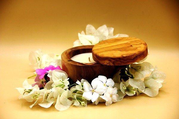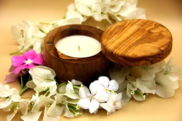Bougie avec couvercle parfumée naturelle antiallergique bois d'olivier