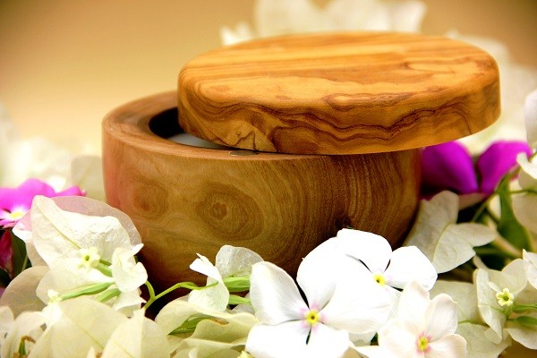 récipient: boitier en bois d'olivier